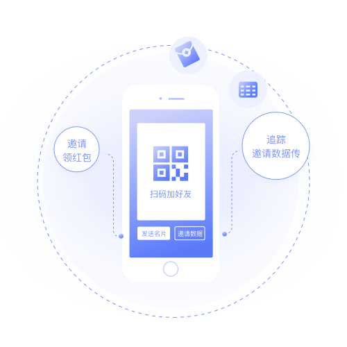 為每個客戶生成一張獨一無二的企業微信二維碼,通過該碼邀請好友后,可追蹤邀請數據,同時,可獎勵邀請者一定的紅包。
